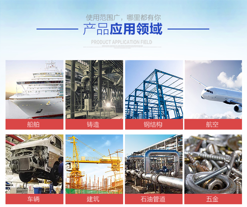 • 工程機械:去除鐵銹、焊渣、氧化皮,消除焊接應力,增加防銹涂膜與金屬基體的結合力,提高防銹質量。