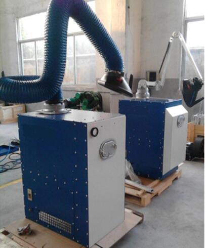 焊煙除塵器通過風機引力作用,焊煙廢氣經萬向吸塵罩吸入設備進風口,設備進風口處設有阻火器,火花經阻火器被阻留,煙塵氣體進入沉降室,利用重力與上行氣流,首先將粗粒塵直接降至灰斗,微粒煙塵被濾芯捕集在外表面,潔凈氣體經濾芯過濾凈化后,由濾芯中心流入潔凈室,潔凈空氣又經活性碳過濾器吸附進一步凈化后經出風口達標排出。