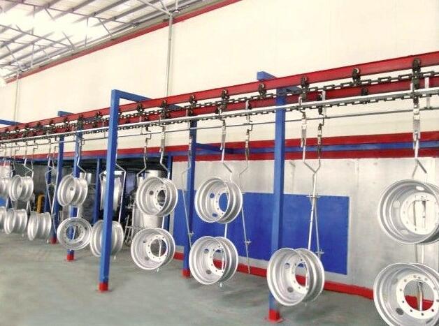 汽車輪轂拋丸機能對原始狀態的工件表面施以強力拋丸,除掉其上的銹層、焊渣及氧化皮,使之獲得均勻一致的金屬光澤,以提高鋼材的涂飾質量與防腐效果。